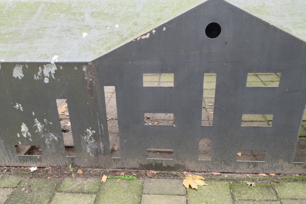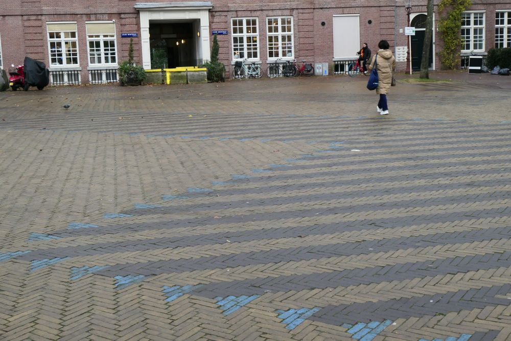 Ada liet ons kunst op het Kazerneterrein zien. En wat je normaal niet ziet is het bijzondere hek om het gebouw van de vroegere kantine heen dat heel erg in verval is. De gekleurde stenen en het patroon van de stenen op het Wilhelmina Blombergplein is aan het vervagen. Ze is bezig met actie om herstel (van beide kunstwerken) voor elkaar te krijgen.