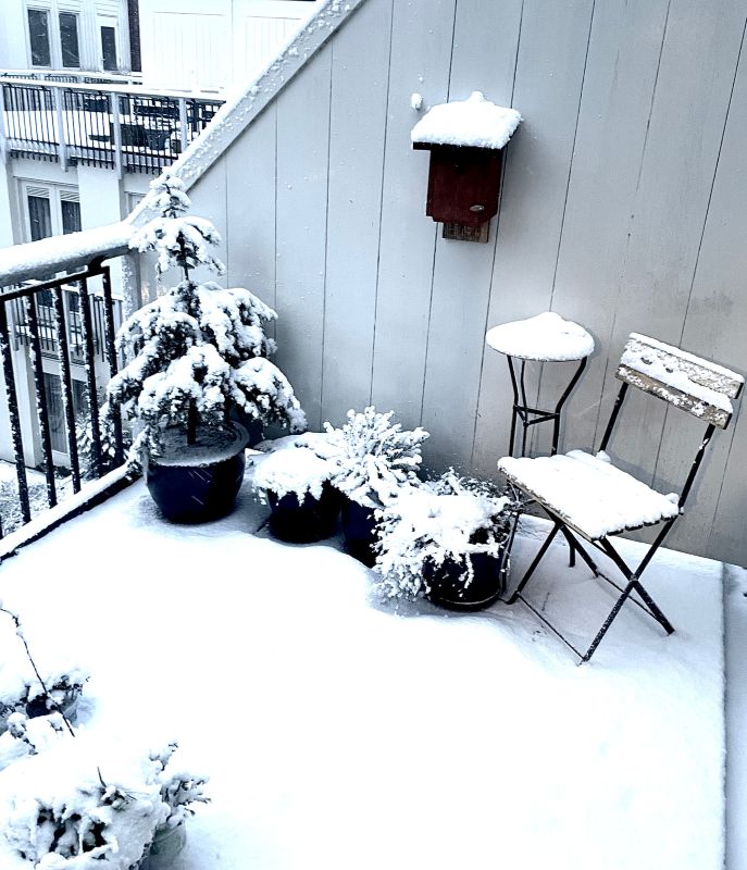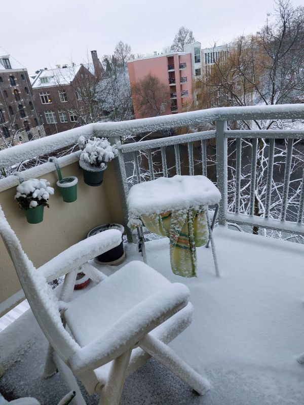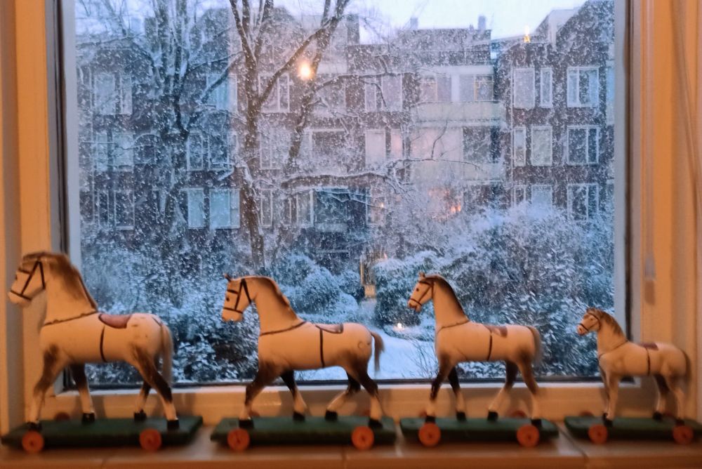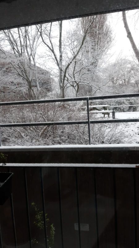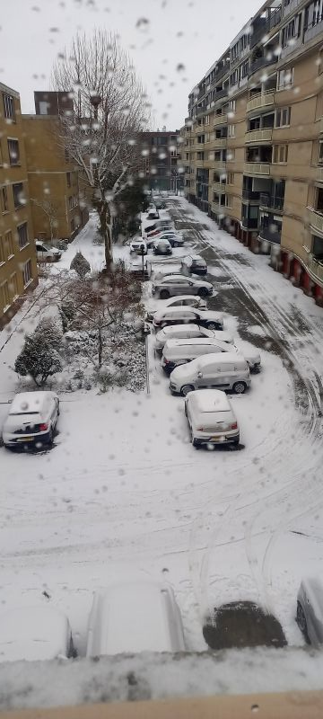 Op de oproep 'maak een foto van de sneeuw vanuit je raam' kwamen de volgende foto's. De naam van de maker staat niet bij de foto's, maar er is een beschrijving. Het resultaat van 1 dag! En daarna nog een dag.
