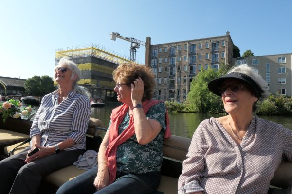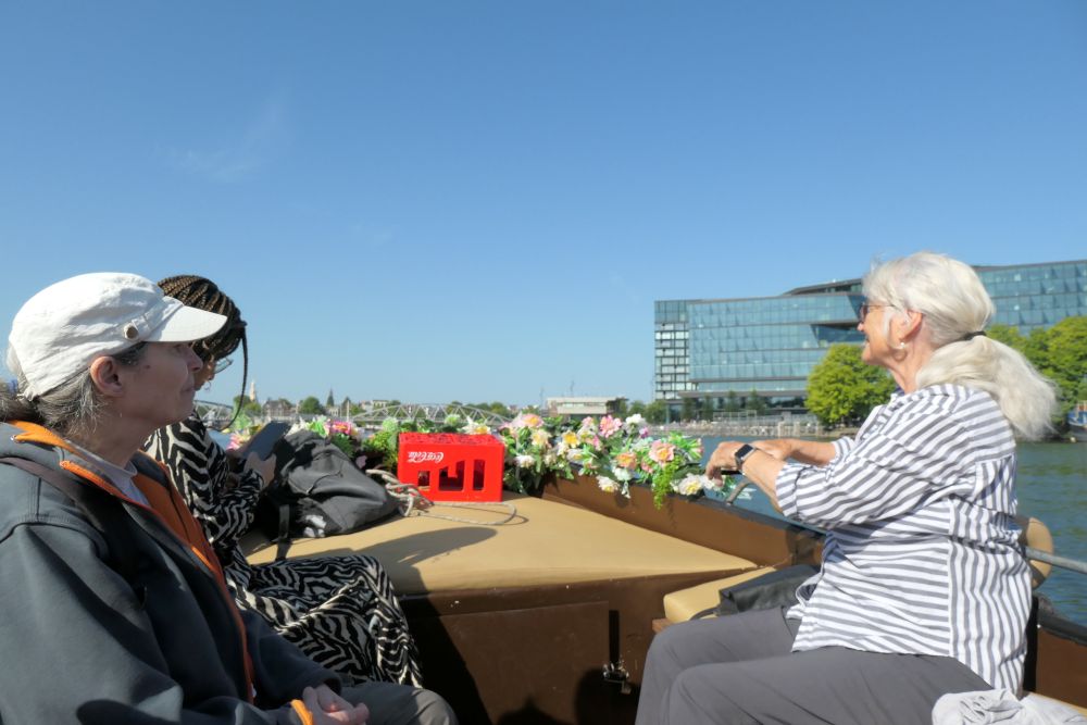 Er werd slechts door twee mensen van de uitjes groep op het aanbod gereageerd, maar ik kon stadsdorpelingen op persoonlijke uitnodiging heel blij maken! Met een leuke stuurman vol verhalen, die de mooiste routes voor ons uitzocht, in de ochtend, toen de toeristenboten nog aan wal lagen, voeren we over lege grachten....het was prachtig en heel gezellig. Amsterdam op zijn mooist. Angelie